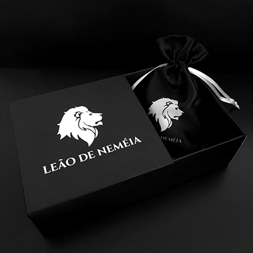 O produto acompanha uma caixa e saquinho de cetim personalizados com a logomarca Leão de Neméia. Enviamos somente uma caixa por pedido. Para conferir fotos da embalagem acesse as fotos do produto.