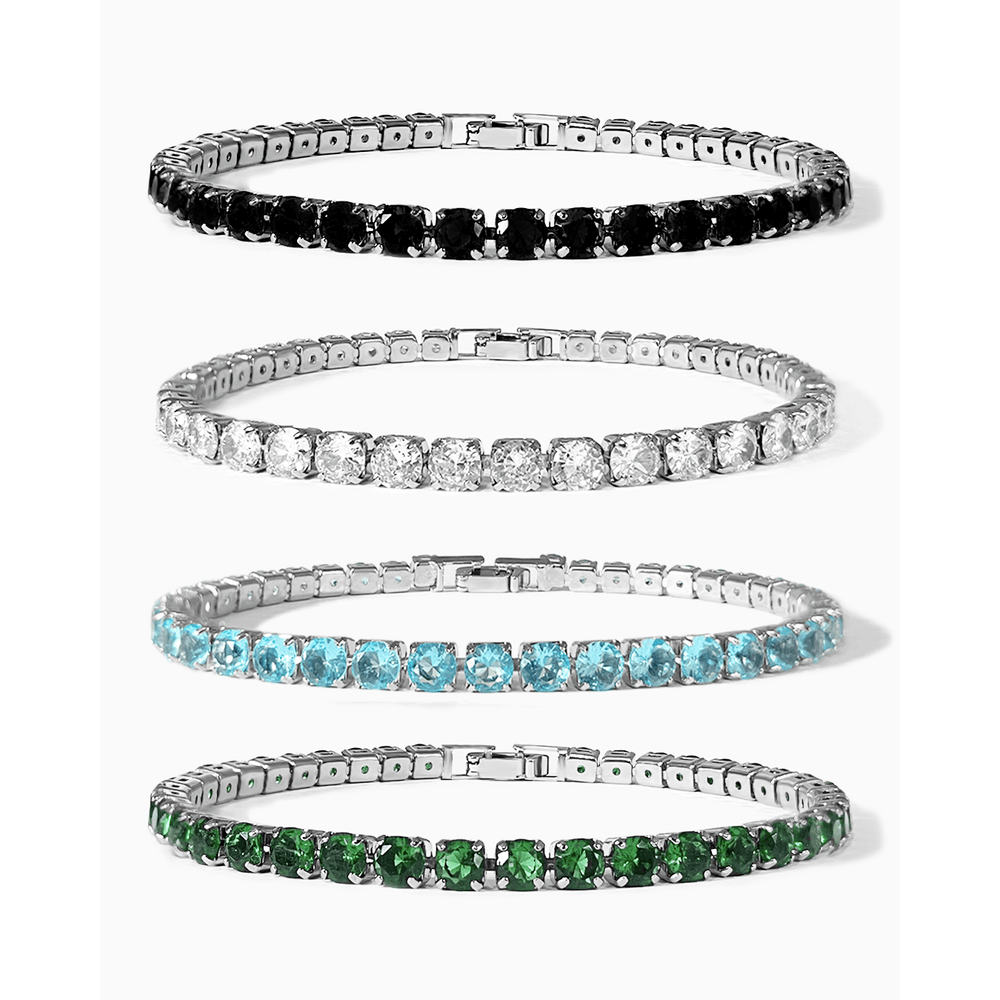 Inclui:- 4 pulseiras Riviera (Preta, Verde, Azul e Branca)
